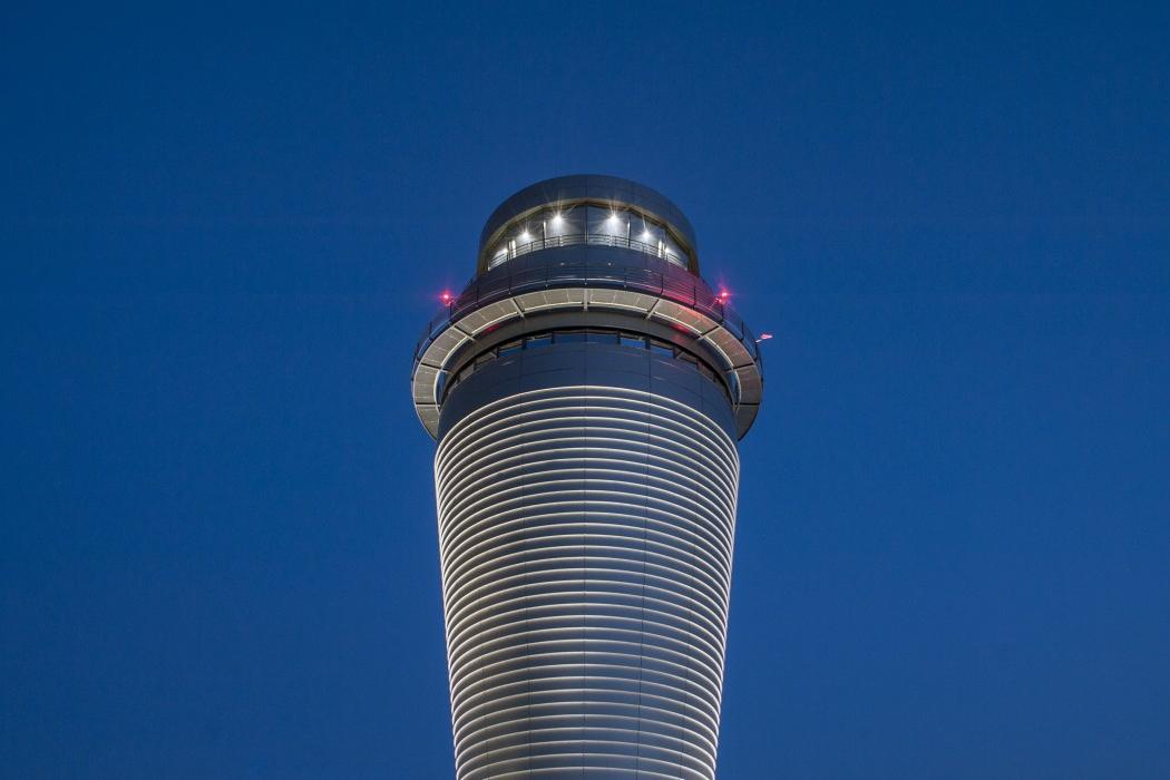 Układ kompozycji obiektu składa się z dwóch elementów: wieży TWR oraz III kondygn. części techniczno-administracyjnej. Kompozycja wieży oparta jest na zasadzie odwróconego stożka przenikającego się z prostopadłościennym trzonem komunikacyjnym. Logika odwróconego stożka związana jest z faktem umieszczenia głównej funkcji w górnej części wieży. Konsekwentne zrealizowanie ww. układu pozwoliło uzyskać dynamizm oraz harmonijnie wpisaną w przestrzeń lotniska bryłę łączącą tradycyjny kształt wieży kontrolnej z nową formą o wysokim poziomie piękna. II kondygnację części techniczno-administracyjnej stanowią poziomy akcent będący podstawą wieży. Całość tworzy jeden zespolony układ kompozycyjny.